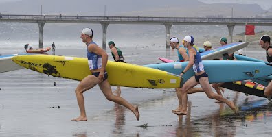 Board racing is an exciting surf sport that involves paddling out through the surf and around a series of buoys beyond the surf line. Depending on the surf conditions, the lead in a board race can change numerous times, which also makes it a great spectator sport. Board makes an ideal complimentary sport for swimmers as the same muscle groups are used. Board also forms one of the three legs of the ironman and ironwoman races. Other races that involve board include: board rescue, taplin relay, ironman and board relay.